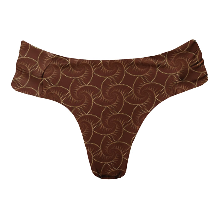 Calcinha de Biquíni Alça Larga Borboleta Embutida Conchas Marrom desenvolvida em tecido de tecnologia LYCRA®, com proteção solar UVA e UVB +50. Peça com estampa exclusiva da Coleção Verão Marétoa, com fino acabamento e costura invisível nas laterais das pernas, garantindo maior conforto durante o uso.