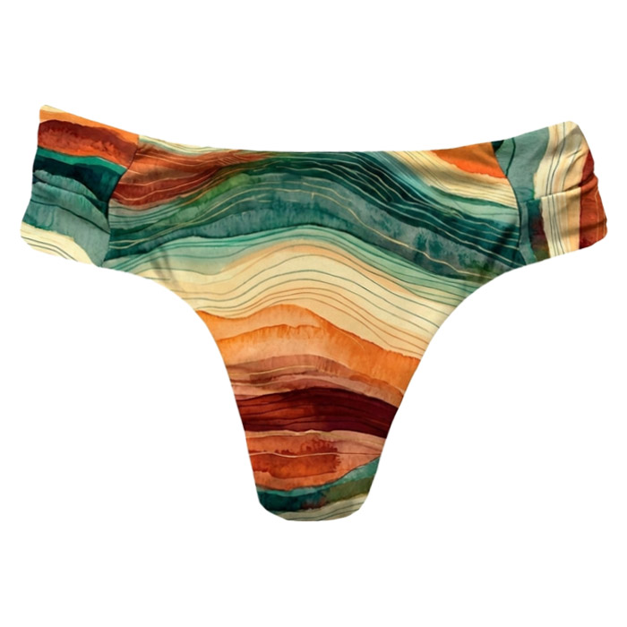 Calcinha de Biquíni Alça Larga Borboleta Embutida Dunas Colorido desenvolvida em tecido de tecnologia LYCRA®, com proteção solar UVA e UVB +50. Peça com estampa exclusiva da Coleção Verão Marétoa, com fino acabamento e costura invisível nas laterais das pernas, garantindo maior conforto durante o uso.