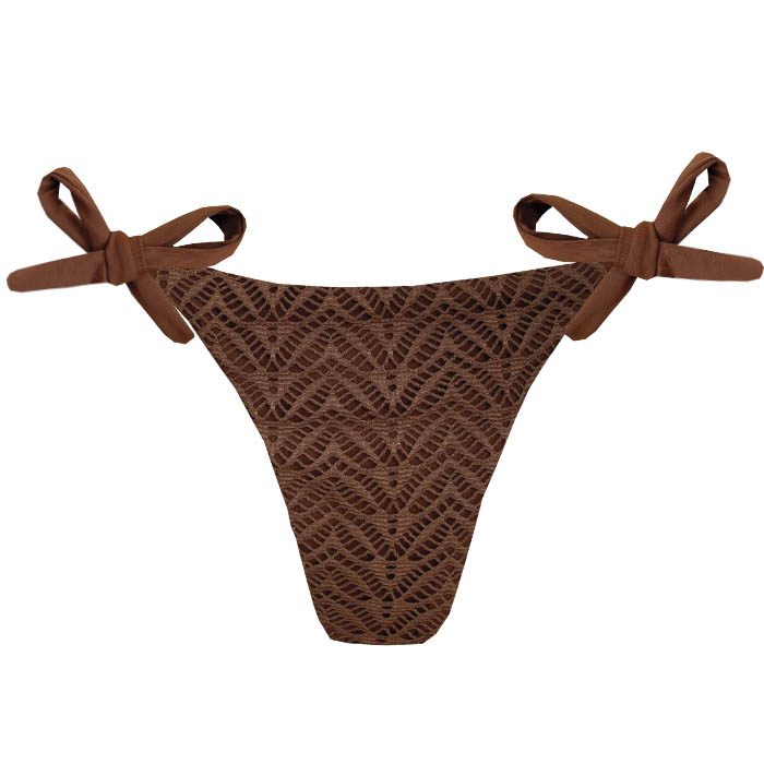Deslumbre com a Calcinha de Biquíni Empina Bumbum Marrom Rendado, uma peça exclusiva da Coleção Verão Marétoa. Seu design traz a sofisticação do marrom chocolate combinado ao delicado detalhe rendado, que valoriza o corpo com um toque artesanal e elegante.. Explore mais rendados aqui.