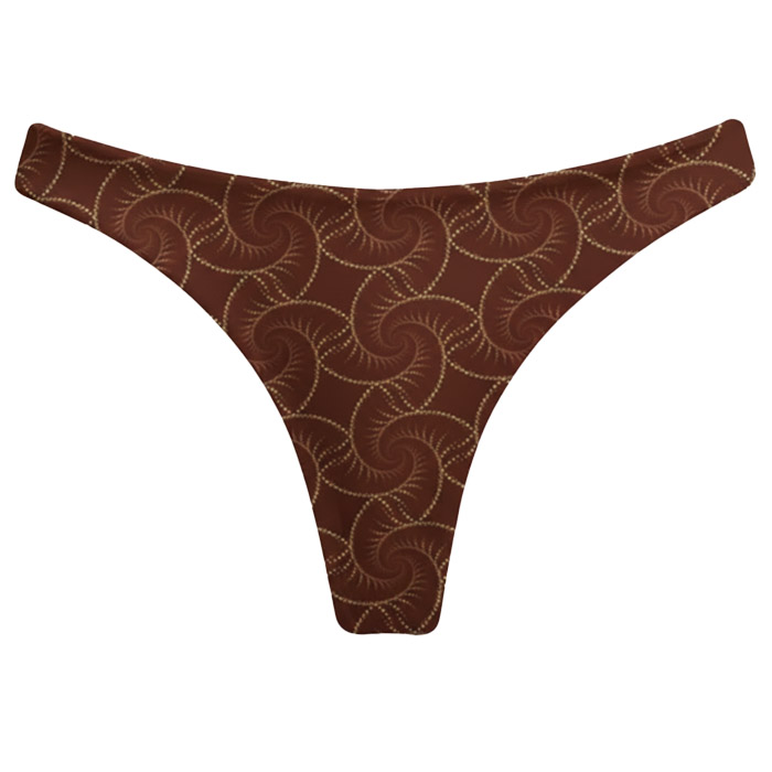 Calcinha de Biquíni Tanga Asa Delta Conchas Marrom desenvolvida em tecido de tecnologia LYCRA®, com proteção solar UVA e UVB +50. Peça com estampa exclusiva da Coleção Verão Marétoa, com fino acabamento e costura invisível nas laterais das pernas, garantindo maior conforto durante o uso.