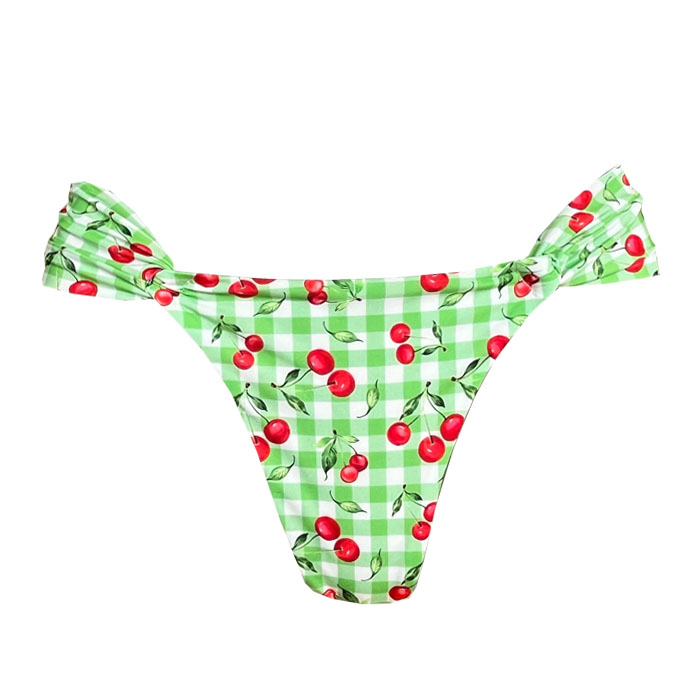 Calcinha de Biquíni Empina Bumbum Inteira Cereja Xadrez Verde desenvolvida em tecido de tecnologia LYCRA®, com proteção solar UVA e UVB +50. Peça com estampa exclusiva da Coleção Verão Marétoa, com fino acabamento e costura invisível nas laterais das pernas, garantindo maior conforto durante o uso.