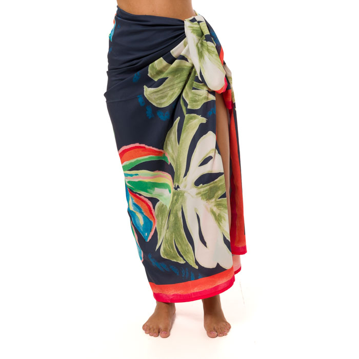 Canga de Praia Pareô Coqueiro Verde, confeccionada em poliéster de altíssima qualidade, estampa localizada e com acabamento em corte a fio. Possui estampa de Coqueiros na parte superior. Além de linda e extremamente útil para tomar sol na praia ou ficar sentada em uma conversa divertida com os amigos também é super versátil, sendo possível utilizar como saída de praia em diversas amarrações.