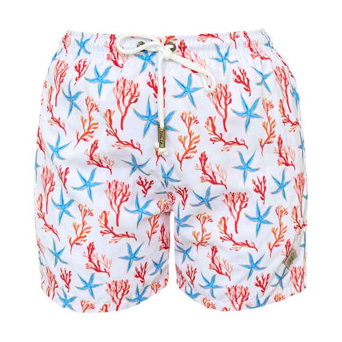 Shorts Bermuda Masculina de Praia Estrela do Mar desenvolvido em poliéster de alta qualidade. Peça com estampa exclusiva da Coleção Marétoa. Possui corda na cintura para amarração, detalhe em termocolante e regulagem com ponteiras douradas.