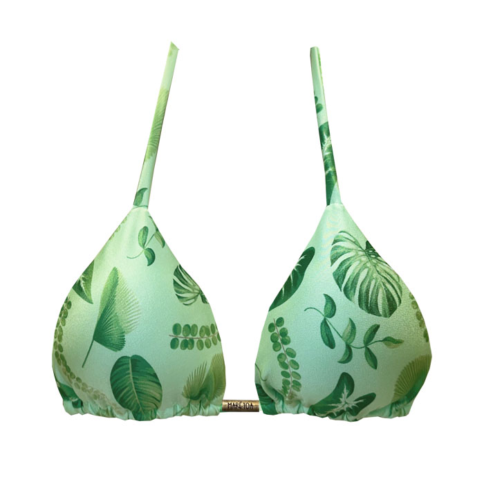 Top de Biquíni Cortininha Botânico Verde Menta com bojo removível e maleável que não quebra e não absorve água, desenvolvido em tecido de tecnologia LYCRA®, com proteção solar UVA e UVB +50. Peça com estampa exclusiva da Coleção Verão Marétoa, com fino acabamento, costura invisível e forro em poliamida trazendo maior conforto à pele.