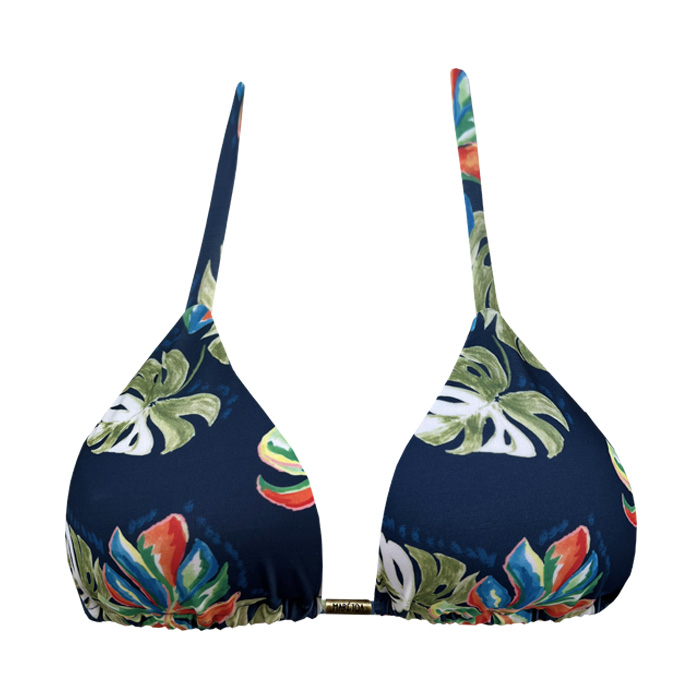 Top de Biquíni Cortininha Noites de Verão com bojo removível e maleável que não quebra e não absorve água, desenvolvido em tecido de tecnologia LYCRA®, com proteção solar UVA e UVB +50. Peça com estampa exclusiva da Coleção Verão Marétoa, com fino acabamento, costura invisível e forro em poliamida trazendo maior conforto à pele. Veja a coleção completa de estampas aqui.
