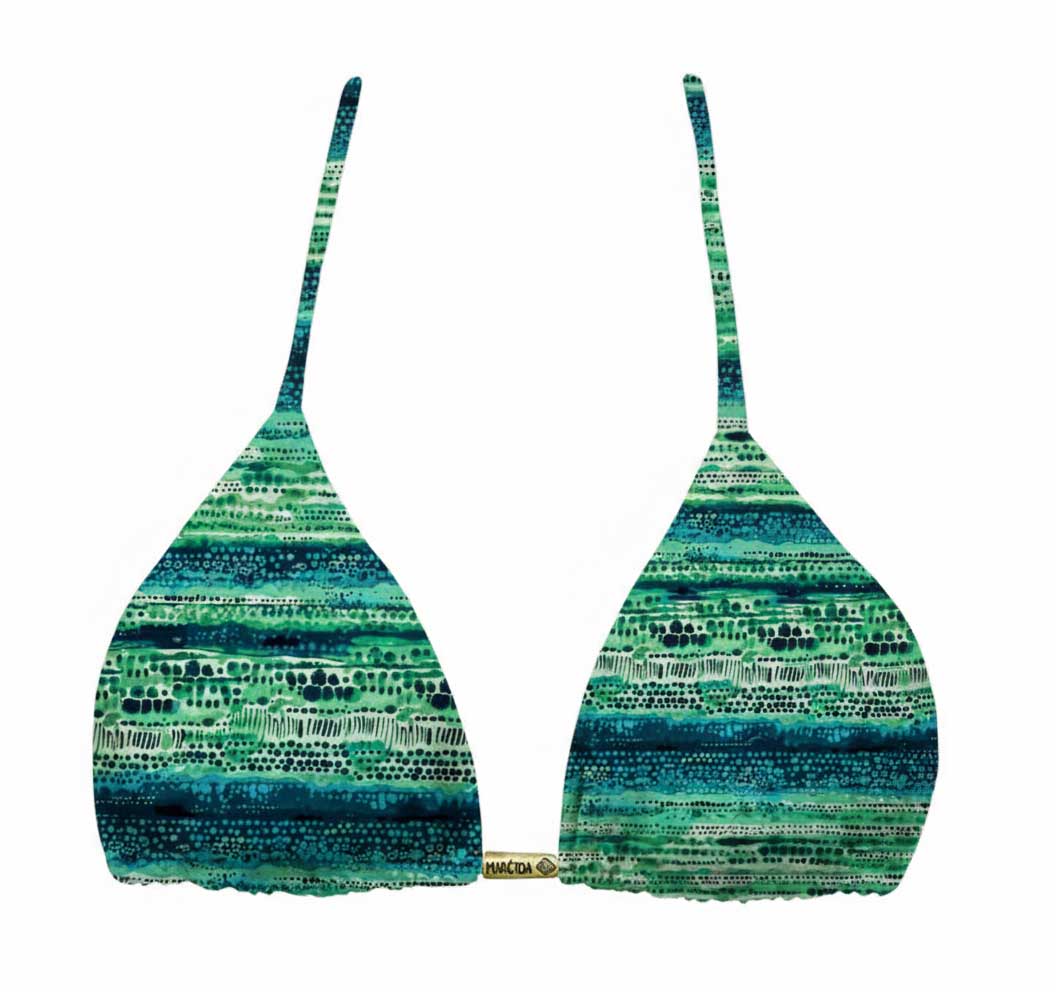 Top de Biquíni Cortininha Noronha Verde com bojo removível e maleável que não quebra e não absorve água, desenvolvido em tecido de tecnologia LYCRA®, com proteção solar UVA e UVB +50. Peça com estampa exclusiva da Coleção Verão Marétoa, com fino acabamento, costura invisível e forro em poliamida trazendo maior conforto à pele.
