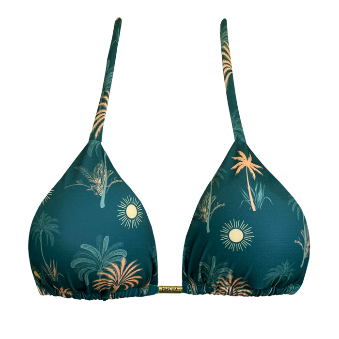 Top de Biquíni Cortininha Solar Tropical Verde com bojo removível e maleável que não quebra e não absorve água, desenvolvido em tecido de tecnologia LYCRA®, com proteção solar UVA e UVB +50. Peça com estampa exclusiva da Coleção Verão Marétoa, com fino acabamento, costura invisível e forro em poliamida trazendo maior conforto à pele. Ideal para um top de biquíni cortininha verde estampado com conforto e estilo. Veja a coleção completa de estampas aqui.