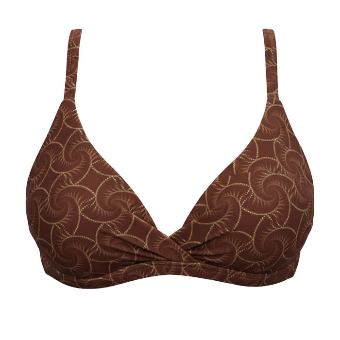 Top de Biquíni Triângulo Fixo Conchas Marrom com bojo removível e maleável que não quebra e não absorve água. Seu fechamento é feito em amarração e suas alças são reguláveis. Desenvolvido em tecido de tecnologia LYCRA®, com proteção solar UVA e UVB +50. Peça exclusiva da Coleção Verão Marétoa, com fino acabamento, costura invisível e forro em poliamida trazendo maior conforto à pele.