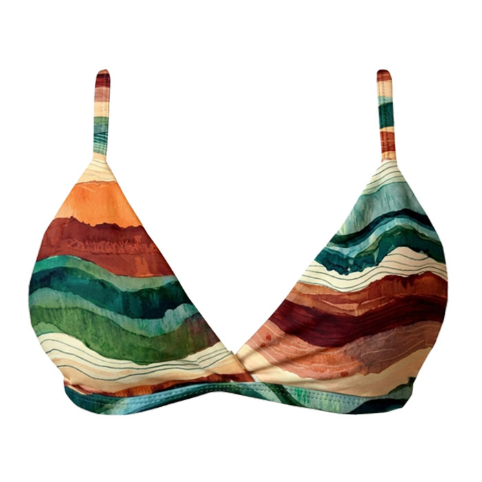 Top de Biquíni Triângulo Fixo Dunas Colorido com bojo removível e maleável que não quebra e não absorve água. Seu fechamento é feito em amarração e suas alças são reguláveis. Desenvolvido em tecido de tecnologia LYCRA®, com proteção solar UVA e UVB +50. Peça exclusiva da Coleção Verão Marétoa, com fino acabamento, costura invisível e forro em poliamida trazendo maior conforto à pele.