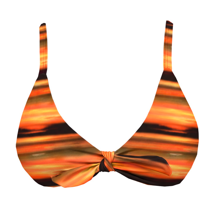 Top de Biquíni Triangulo Nascer do Sol Degradê com bojo removível e maleável que não quebra e não absorve água. Seu fechamento é feito em amarração e suas alças são reguláveis. Desenvolvido em tecido de tecnologia LYCRA®, com proteção solar UVA e UVB +50. Peça exclusiva da Coleção Verão Marétoa, com fino acabamento, costura invisível e forro em poliamida trazendo maior conforto à pele.