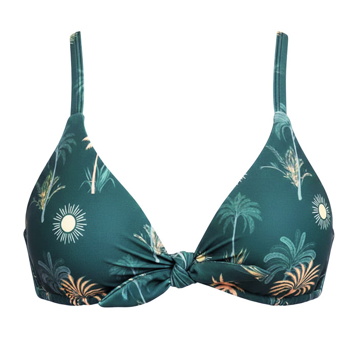 Top de Biquíni Triangulo Solar Tropical Verde com bojo removível e maleável que não quebra e não absorve água. Seu fechamento é feito em amarração e suas alças são reguláveis. Desenvolvido em tecido de tecnologia LYCRA®, com proteção solar UVA e UVB +50. Peça exclusiva da Coleção Verão Marétoa, com fino acabamento, costura invisível e forro em poliamida trazendo maior conforto à pele.